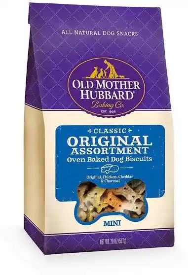 If your dog loves variety in his treats, then heโll love Old Mother Hubbard Classic Original Assortment dog treats. The nutritious biscuits are oven-baked to lock in all the flavor and crunchy texture. These all-natural, nutritionally packed treats come in four different flavors including original, chicken, cheddar and char tarโmaking it a great choice for dogs who easily get bored. These tasty rewards are great for dogs of all ages and sizes, plus the bone-shaped snacks are made without the use of artificial preservatives.